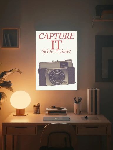 “Capture it before it fades” — a quiet reminder that moments slip away, but memories stay. This camera digital poster celebrates nostalgia, light, and the art of stillness.